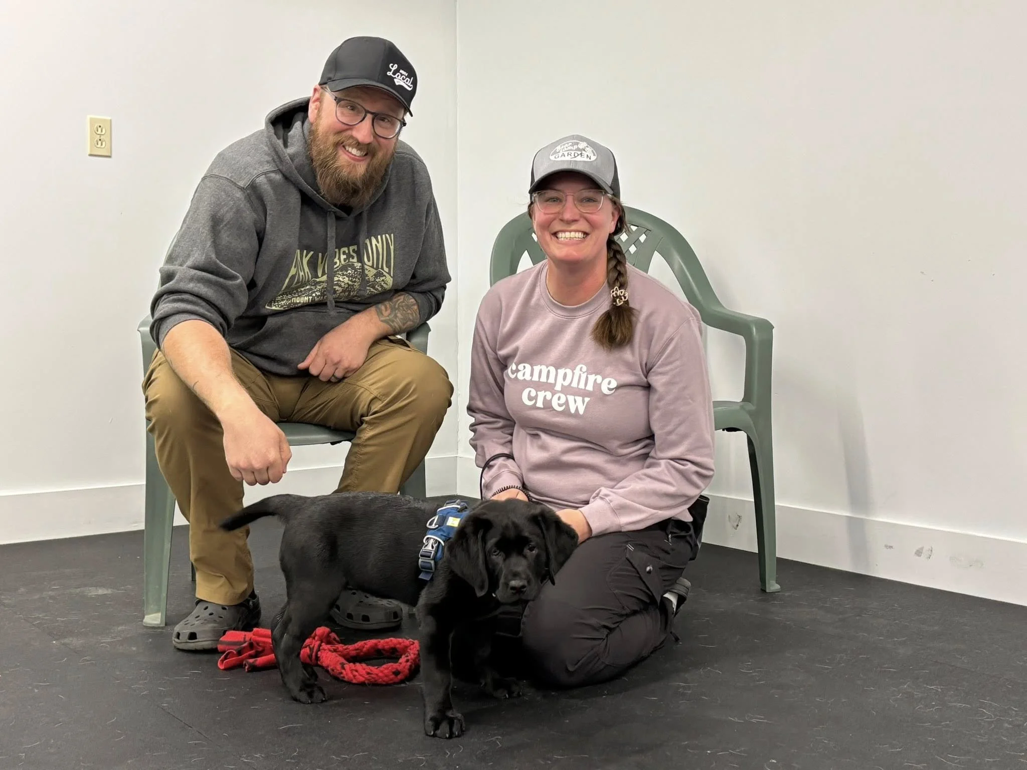 Meg: Going into puppy raising for ACTS, we had a basic understanding of the role, though we’ve since realized there was more to learn in the first 2 months. At the MWV Chamber Event, we discussed key details that eased our concerns. Nadine introduced us to the “auntie” and “uncle” roles—a wonderful support system where volunteers care for puppies when raisers need a break, like for a camping vacation (though we were excited to hear that a puppy could also join us!) or a day of errands. This was a game-changer, as it meant we could balance raising a puppy with our love for outdoor adventures. We haven’t taken full advantage of this yes but it’s nice knowing it’s an option.
